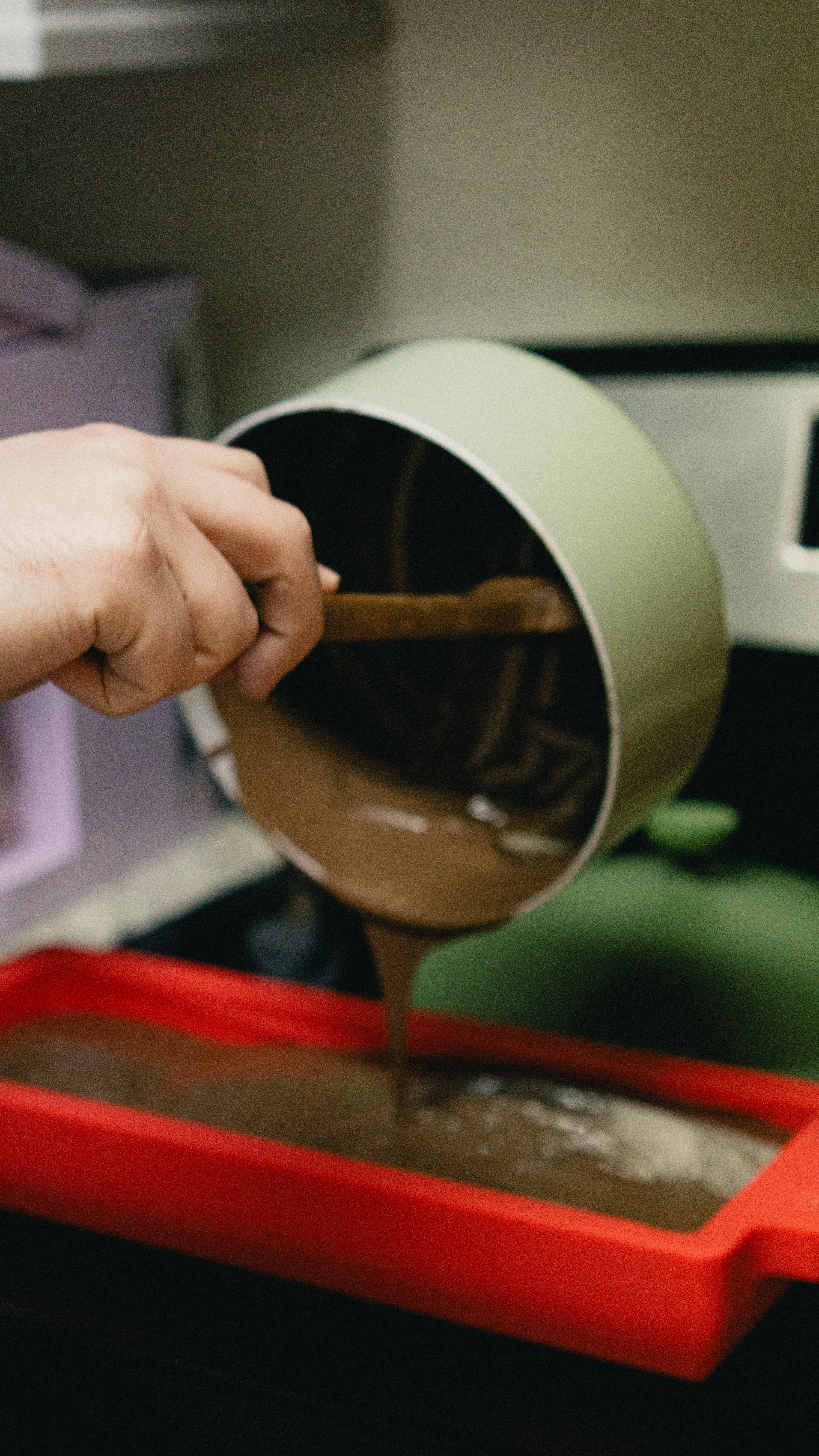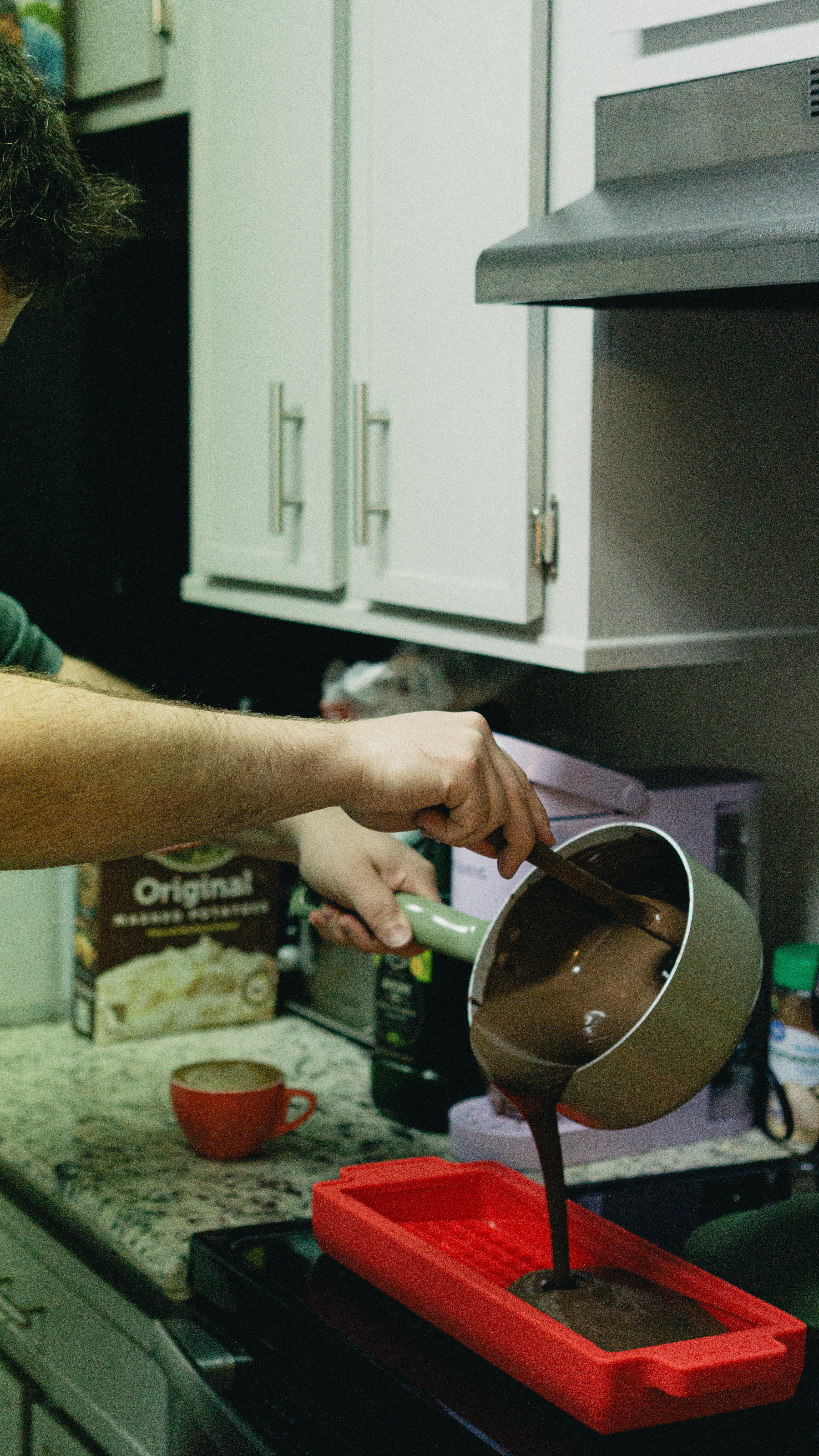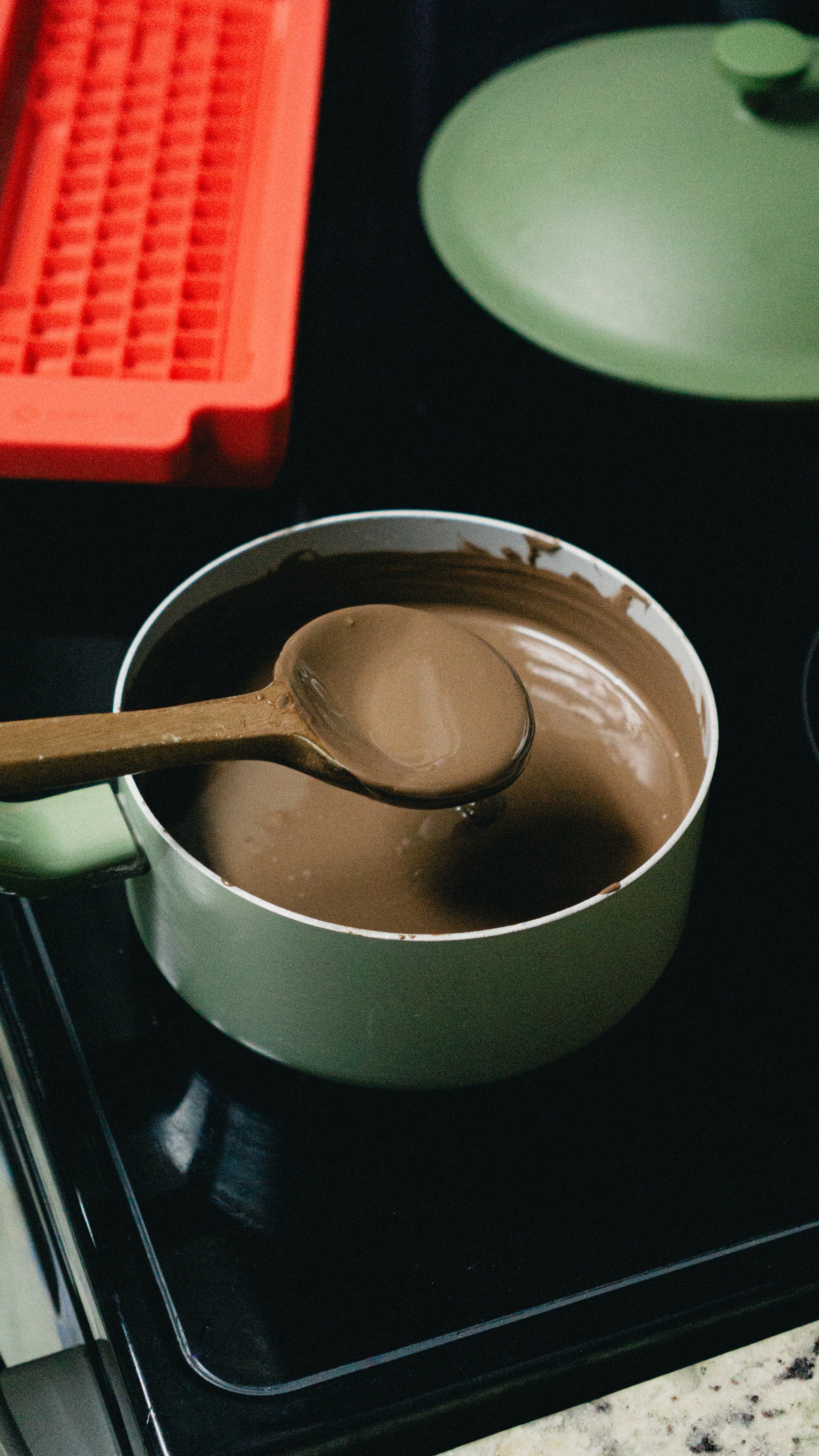 • Carefully pour the melted chocolate into your mold. (do not fill to the top of the mold)